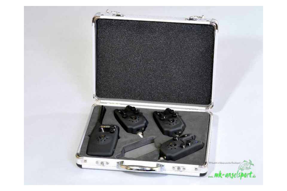 Bissanzeiger Set von Prologic zum Karpfenangeln blaue LEDs, 5 Sensibilitätsstufen, 6 Lautstärkestufen inklusive Lautlosmodus, 100m Funkreichweite, manuell einstellbares Nachtlicht Bissanzeiger werden mit 2 AAA Batterien betrieben & Receiver wird mit 9V Blockbatterie betrieben (Batterien nicht im Lieferumfang enthalten sehr helle LEDs, wasserdicht Lieferumfang: 2 Bissanzeiger, 1 Receiver, 3 Schutzhüllen, 1 Handschlaufe